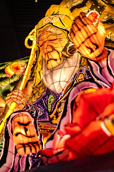아오모리 네부타 마쓰리(ねぶた祭)의 기원에 대해서는 여러 설이 있습니다. 가장 유력한 설은 나라 시대 말기인 797년, 세이타이쇼군 사카노우에노 다무라마로(坂上田村麻呂)가 동북 원정 시 거대한 등불 조형물로 적을 속여 기습했다는 전설에 기반한다는 것입니다. 또 다른 설은 나눌 수 없는 졸음(ねむた)을 쫓기 위해 등불을 만들어 강에 흘려보내던 풍습 "네무타나가시(眠た流し)"에서 유래한다는 것입니다. "네부타(ねぶた)"라는 이름 자체가 "졸음"의 방언에서 비롯된 것으로 추정됩니다. 현재와 같이 거대한 무사 형상의 네부타는 에도~메이지 시대에 아오모리 상인들이 서로 경쟁적으로 제작하면서 발전했으며, 현재는 전문 네부타 장인(제작사)이 1년에 걸쳐 제작합니다.